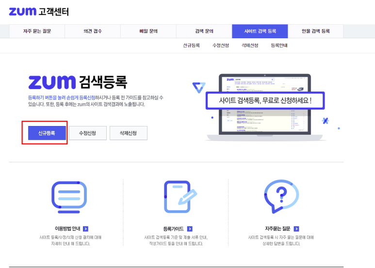 알리기 위해 각각의 포털사이트에 사이트를 등록해야합니다