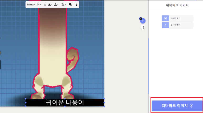 이미지를 선택해주시고 텍스트 추가를 눌러줍니다