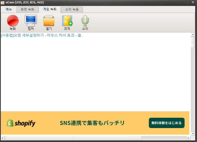 그럴때에는 오캠을 추천합니다 오캠은 녹화 화질도 설정가능하며 GIF짤방도 만들 수 있어서 편리합니다