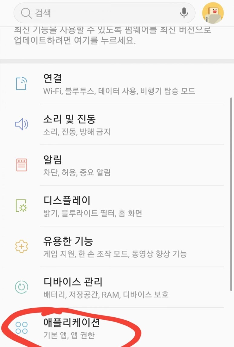 설정-애플리케이션클릭-강제중지 버튼클릭-앱 재실행