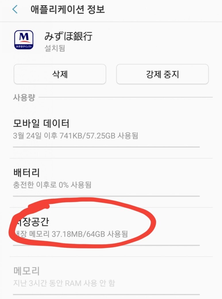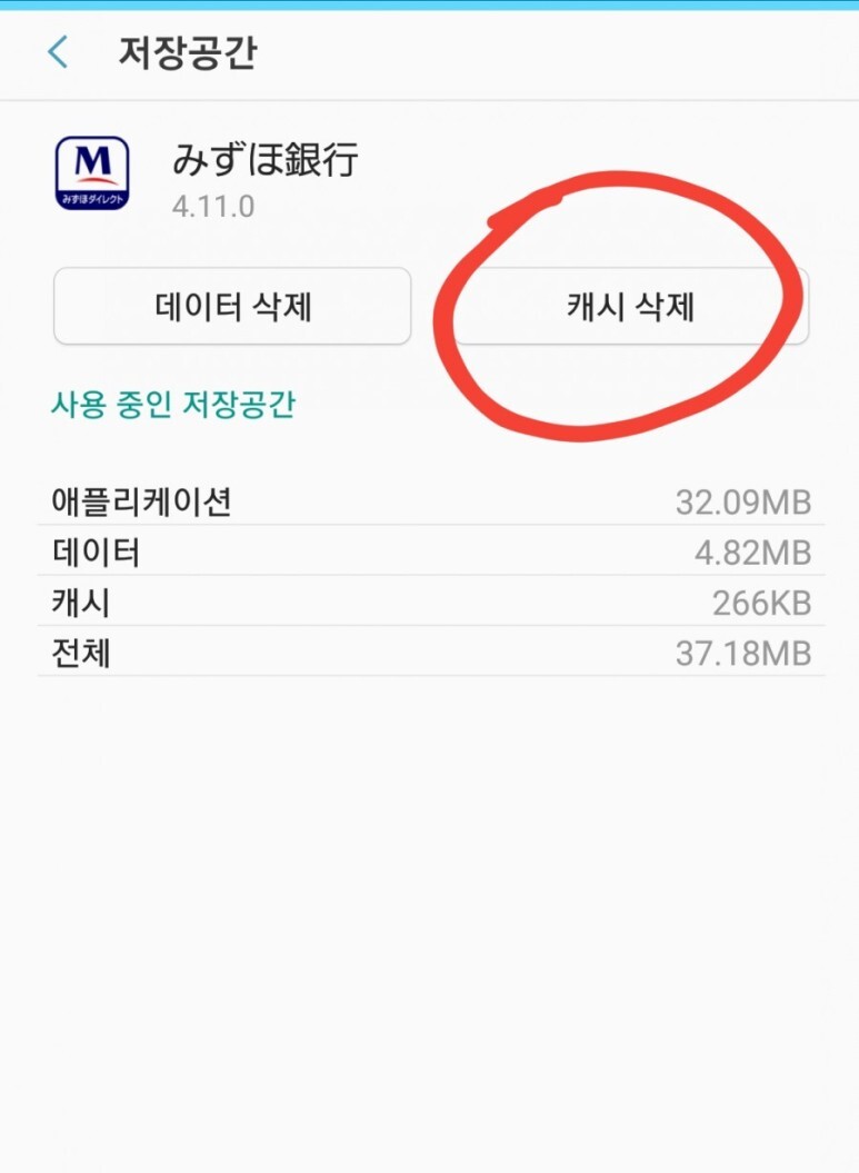 설정-애플리케이션-앱선택-저장공간-캐시삭제