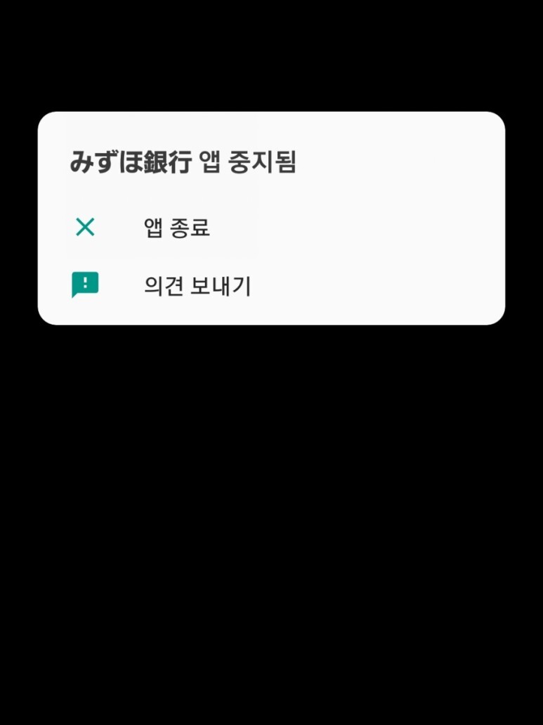 앱 중지됨, 앱종료, 의견보내기 라는 메세지창이 뜨는데요