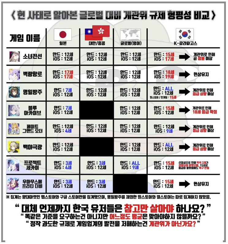 게임사들도 게임물관리위원회가 이렇게 요청을 해오니 어쩔수없이 등급을 올리거나 게임내 일러스트를 수정하고