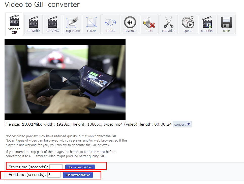 gif파일의 시작과 끝시간을 지정해줍시다